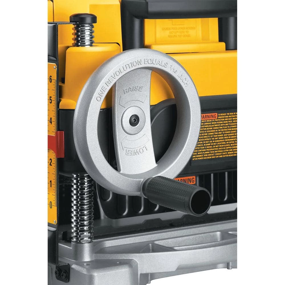 Featuring a 3-knife cutter-head, this DEWALT 13 in. Heavy-Duty 2-Speed Planer provides long-lasting knife life and makes knife changes faster and easier for less downtime. It has a powerful 15 amp with a 20,000 RPM motor as it will allow you to handle larger cuts in wider materials with no problem. The removable material gauge and extra-large thickness scale makes accurate cuts with every pass and allows you to return to whichever thickness you need quickly. It also features a 2-speed gear box allows you to change feed speed to optimize cuts per inch.