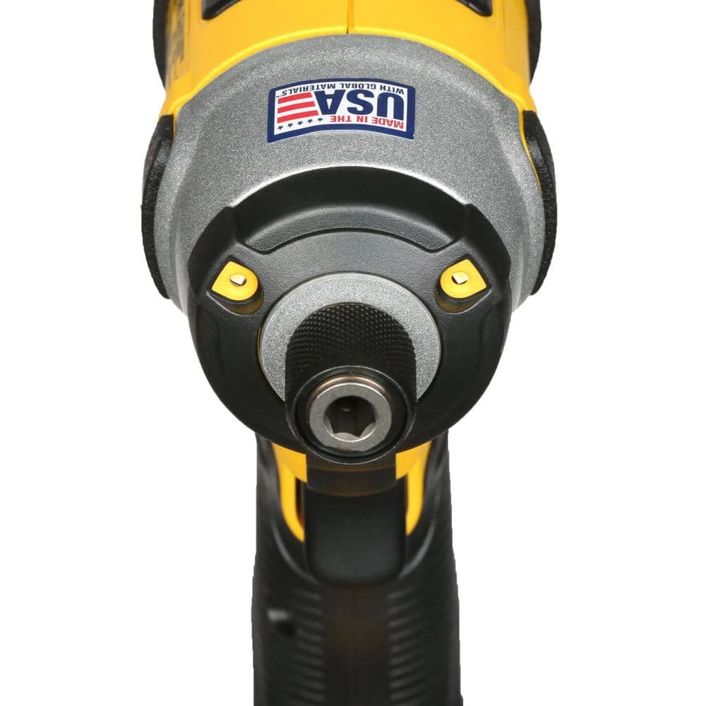 The DEWALT 1/4 in. 20-Volt Cordless Impact Driver provides up to 1400 in. lbs. of maximum torque and delivers up to 2800 RPM and 3200 IPM for fast, efficient work in a range of fastening applications. 3 LED lights on a 20-second delay after trigger release help to illuminate dark work spaces. At only 5-1/2 in. long and 2.8 lbs. in weight, this compact impact driver packs a serious punch in a small-size package.