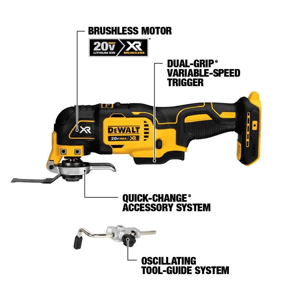 - DCS355 has a Quick-Change accessory system that allows blades and attachments to be changed quickly without wrenches