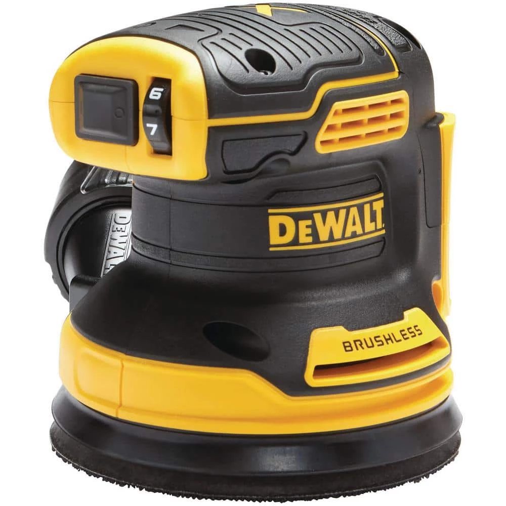 Our 20V MAX* XR Brushless 5 in. Cordless Random Orbital Sander provides you with the power and runtime needed to get the job done. A variable-speed dial provides ultimate speed control from 8,000 – 12,000 OPM for a variety of projects. One-handed locking dust bag attaches securely to the sander to aid in dust collection or the user can attach the sander directly to the DWV010 or DWV012 dust collectors. Rubber overmold grip provides comfortable sanding. Replacement 8-hole hook-and-loop sanding pad for quick, easy paper changing.