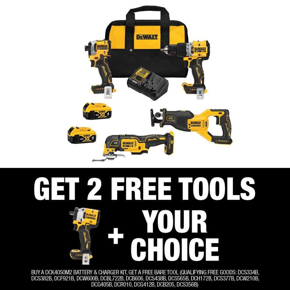 This 20V MAX Brushless 4-Tool Combo Kit includes one XR hammer drill/driver, ATOMIC Impact driver, XR oscillating multi-tool, XR reciprocating saw, two 4.0Ah batteries, charger and kit bag. The DCD805 hammer drill/driver is equipped with a 3-postion, pivoting LED for enhanced visibility in dimly lit work areas. At less than 4 in. in length, the DCF850 ATOMIC 20V MAX 1/4 in. Brushless 3-speed impact driver can handle a wide variety of applications without sacrificing power. The DCS382 reciprocating saw allows you to make quick cuts with the and change blades with ease using the twist-style keyless blade clamp. The DCS356 oscillating tool has 3-speeds to match your speed to application and works with most oscillating tool accessory brands. All tools included are backed by a 3-year limited warranty so you can buy with confidence. The ATOMIC 20V MAX 1/2 in. Cordless Impact Wrench DCF921B was designed easily to handle various fastening projects.