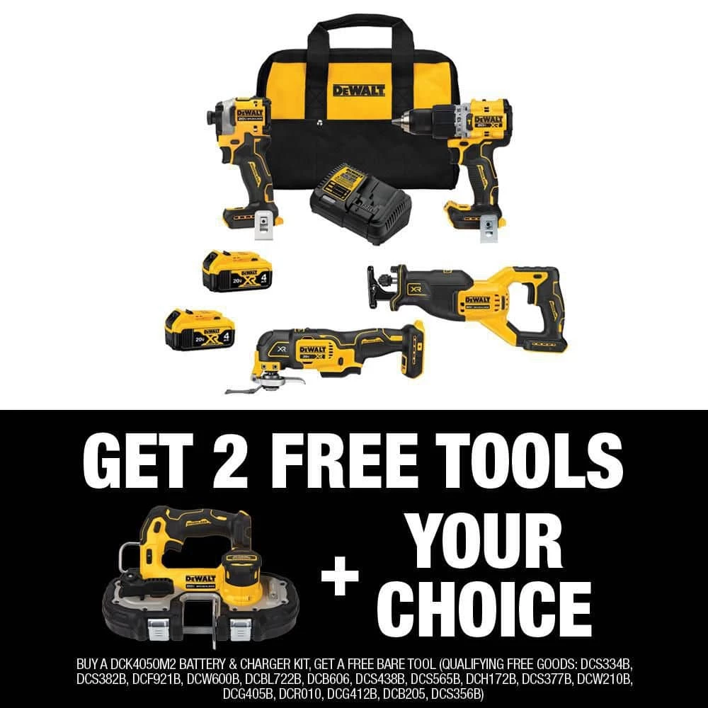 This 20V MAX* Brushless 4-Tool Combo Kit includes one XR hammer drill/driver, ATOMIC Impact driver, XR oscillating multi-tool, XR reciprocating saw, two 4.0Ah batteries, charger, and kit bag. The DCD805 hammer drill/driver is equipped with a 3-postion, pivoting LED for enhanced visibility in dimly lit work areas. At less than 4 in. in length, the DCF850 ATOMIC 20V MAX* ¼ in. Brushless 3-speed impact driver can handle a wide variety of applications without sacrificing power. The DCS382 reciprocating saw allows you to make quick cuts with the and change blades with ease using the twist-style keyless blade clamp. The DCS356 oscillating tool has 3-speeds to match your speed to application and works with most oscillating tool accessory brands. All tools included are backed by a 3-year limited warranty so you can buy with confidence. This Compact Bandsaw DCS377B is lightweight at 6.6 lbs. with an integrated guard, making it ideal for overhead and one-handed cutting applications.