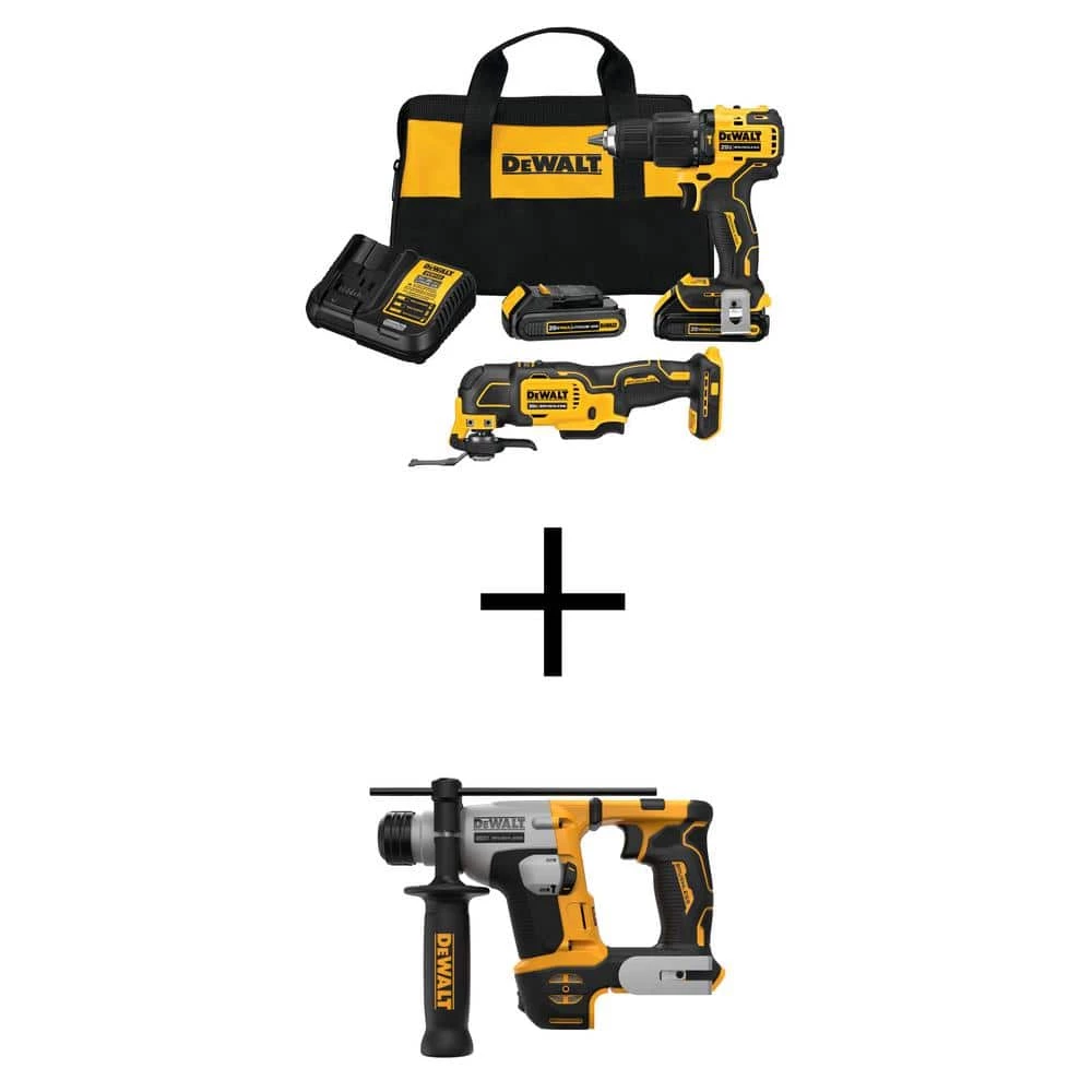 Take on the toughest tasks with two high-performing tools. The Atomic 20V MAX Brushless Cordless 1/2 in. Hammer Drill/Driver’s brushless motor delivers 340 UWO, with hammer functionality for completing masonry drilling applications. Accurate cutting is made easier with a bright LED positioned on the foot. The included Oscillating Multi-Tool’s DUAL-GRIP variable-speed trigger provides ultimate speed and application control, while the Quick-Change accessory system makes changing blades and attachments easy so time isn’t taken away from the job at hand. Both tools feature an ergonomic design for balance and easier tool control and are backed by a 3-year, limited warranty so you can buy with confidence. This combo kit also includes 2 Lithium Ion batteries, a charger, and a carrying bag. Tackle demanding jobs with this high-performance ATOMIC 20-Volt MAX 5/8 in. Brushless Cordless SDS Plus Rotary Hammer DCH172B.