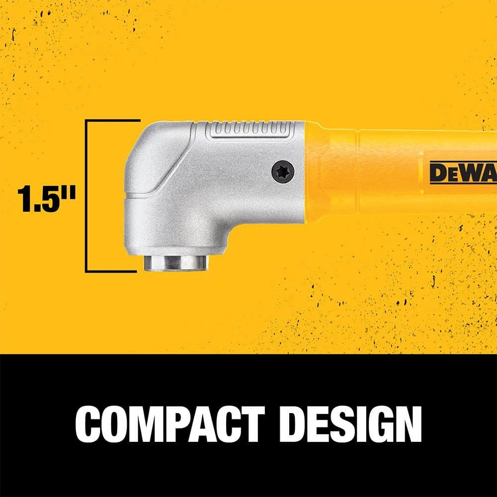 The DEWALT MAXFIT Right Angle Attachment features a compact 1-1/2 in. front-to-back design. This Right angle holder provide users with accessibility in close-quarter drilling and fastening applications. The metal-gear case design provides durability and longer life while the addition of a robust magnet provides fastener retention.