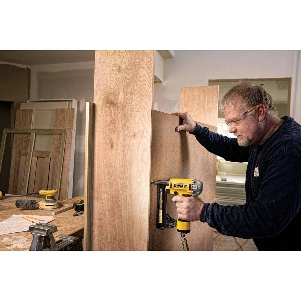 The DEWALT DWFP1838 18-Gauge narrow crown stapler is ideal for most finish or trim nailing applications. The DWFP1838 is backed by a DEWALT 7-year limited warranty for added peace of mind. This kit includes stapler, fasteners, case, 1/4 in. fitting, belt hook and no-mar tips.